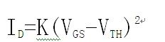 對于特定的MOSFET,K為常數。因此,MOSFET處于飽和狀態時ID與VGS是平方的關系。