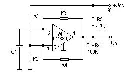 不難看出,當輸出狀態一旦轉換后,只要在跳變電壓值附近的干擾不超過ΔU之值,輸出電壓的值就將是穩定的。但隨之而來的是分辨率降低。因為對遲滯比較器來說,它不能分辨差別小于ΔU的兩個輸入電壓值。