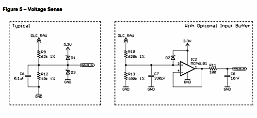 當電壓采樣速率低和要求低時,左邊電路圖即可滿足;當采樣速率和精度要求比較高時,采用右邊電路。