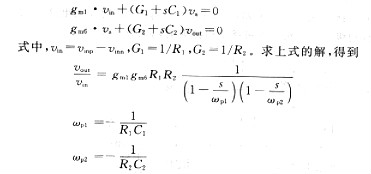 由此就可以求得電壓增益。這里的Wpl、Wp2表示頻率特性的極點。低頻端的極點叫做第一極點( first pole)或主極點(dominant pole),高頻端的極點叫做第二極點(second pole)或非主極點(non-dominant pole)。