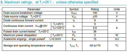 漏源電壓(Vdss):100V連續(xù)漏極電流(Id):9A