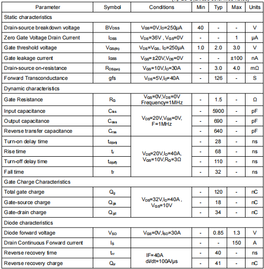 漏源通態電阻(RDS(on)):3.0mΩ