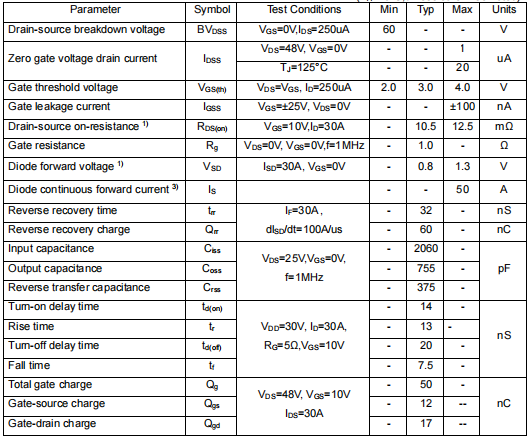 漏源擊穿電壓:60V